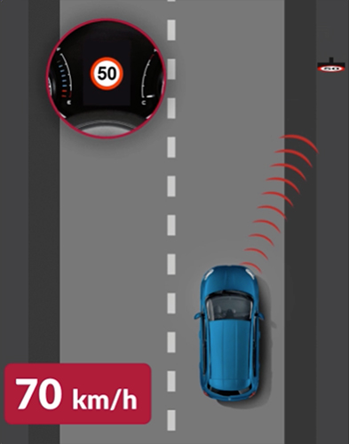 Le système vous alerte lorsque vous changez involontairement de voie sans utiliser les clignotants. Le système d'assistance au maintien de la trajectoire vous avertit directement sur le tableau de bord et déplace doucement le volant pour vous ramener dans votre voie. Disponible uniquement sur la version Sport.